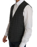 Dolce & Gabbana Gray Wool STAFF Checkered Stretch Vest