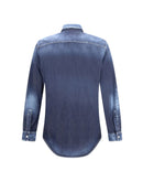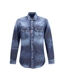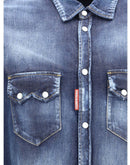 Cotton Shirt with a denim-effect design by Dsquared2, with a classic collar and front closure with press studs. The model features two welt pockets with flap on the chest and adjustable cuffs with a button. A utility-inspired garment, perfect for casual looks with a bold character.