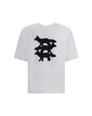 The Stunt Fox Oversize T-shirt by Maison Kitsuné brings creativity and wit into a standout wardrobe staple. Crafted from heavier organic cotton jersey (240g), it offers an oversized fit and enveloping comfort. The front and back feature the whimsical “Stunt Fox” print by Kajsa Ståhl, depicting three foxes stacked in a surreal yet architectural balance. A playful yet artistic piece, it embodies Maison Kitsuné’s ability to merge fashion with imagination.