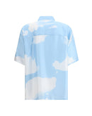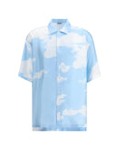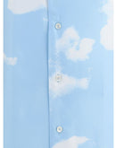 Moschino’s silk Shirt with cuban collar is a sophisticated and contemporary piece. Short-sleeved, it features a front button closure, side slits and a sky-inspired pattern with white clouds. An oversized fit completes the design for a sleek and modern look.