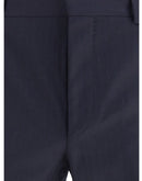 The single-breasted wool and cashmere Suit by Prada exemplifies refined tailoring and timeless sophistication. Crafted from a luxurious blend of wool and cashmere, it features a slim fit and meticulous attention to detail. The jacket comes with a classic notch lapel, two-button closure, flap welt pockets, and four-button cuffs, while a central back vent and full lining enhance its structure. The slim trousers are finished with slanted front pockets and welt back pockets, offering a perfect balance between classic craftsmanship and modern elegance.