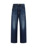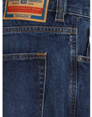 Cotton 2010 D-Macs Jeans by Diesel, five-pocket design, front button and zipper closure, waistband loops, iconic branded signature leather pressure-printed patch applied at back.