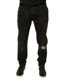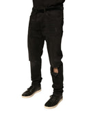 Dolce & Gabbana Black Ripped Logo Cotton Skinny Denim Jeans