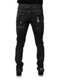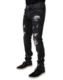 Dolce & Gabbana Black Tattered Cotton Skinny Men Denim Jeans