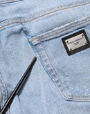 blue jeans feature a slim fit and distressed detailing for a modern, worn-in look. Crafted from premium cotton, they combine street-style attitude with luxury craftsmanship, perfect for elevated everyday wear.