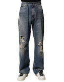 Dolce & Gabbana Blue Cotton Tattered Men Denim Jeans
