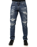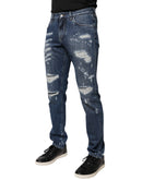 Dolce & Gabbana Blue Cotton Tattered Skinny Denim Jeans