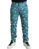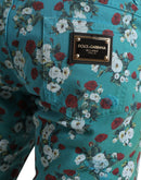 Dolce & Gabbana Blue Floral Print Skinny Cotton Denim Pants