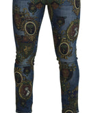 Dolce & Gabbana Blue Medal Print Slim Fit Cotton Jeans