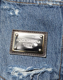 Dolce & Gabbana Blue Tattered Cotton Logo Plaque Denim Jeans