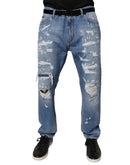 Dolce & Gabbana Blue Tattered Straight Cotton Denim Jeans