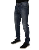 Dolce & Gabbana Dark Blue Cotton Leather Skinny Denim Jeans