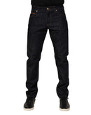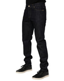 Dolce & Gabbana Dark Blue Cotton Logo Plaque Men Denim Jeans