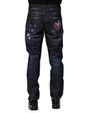 Dolce & Gabbana Dark Blue Tattered Skinny Denim Jeans