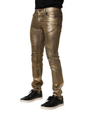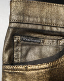 Dolce & Gabbana Gold Tattered Cotton Stretch Slim Denim Jeans