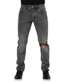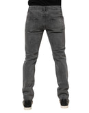 Dolce & Gabbana Gray Cotton Logo Plaque Denim Jeans