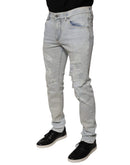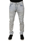 Dolce & Gabbana Light Blue Cotton Blend Tattered Skinny Denim Jeans