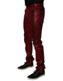 Dolce & Gabbana Red Leopard Cotton Slim Fit Denim Jeans