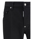 Cotton Skater jeans by Dsquared2 feature a classic five-pocket design and straight fit. The front closure is with buttons, while the waistband is finished with belt loops. On the back stands out the iconic leather patch with the brand’s signature pressure print, a distinctive detail with unmistakable style.