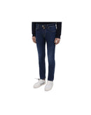 Jacob Cohën jeans with stretch cotton, slim fit dark blue Bard model, five pocket model with embroidered logo on the pocket, silver button, yellow ponyskin patch, yellow stitching details
