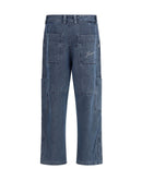 The Le Cargo De-Nîmes Carré Jeans by Jacquemus reinterpret denim with a sculptural and contemporary approach. The wide, straight-leg cut pairs with functional details such as cargo pockets on the leg and back patch pockets featuring the brand’s lettering. The front zip-and-button fastening and belt loops complete a design that merges urban attitude with refined craftsmanship. A statement piece that defines modern, effortless style.