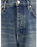 Wide Twist Jeans by Sunflower offer a modern interpretation of denim with a wide, bold cut. Made of twisted wide denim, they feature a loose fit and twisted side seams that add movement and character. The dirty dye on the wash gives an authentic vintage effect, while the recycled metal trim reflects the brand’s commitment to sustainability. A garment with a strong aesthetic impact, perfect for a contemporary, casual style.
