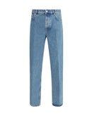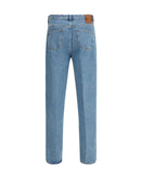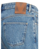 Valentino’s Jeans feature a front button closure and a classic straight five-pocket design. Equipped with belt loops at the waist, they are complemented by a logoed leather patch on the back, a distinctive detail that enhances the brand’s identity.