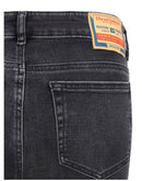 The 1969 D-Ebbey bootcut Jeans by Diesel feature a bootcut fit with a low waist and slim leg. A versatile classic, this silhouette offers higher back coverage and hugs the body from the hips to the knees, creating a leg-lengthening effect. Made from stretch denim with a percentage of recycled cotton, they come in a clean black wash from Diesel’s DNA selection.