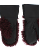 Dolce & Gabbana Black Leather Bordeaux Shearling Gloves