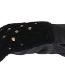 Dolce & Gabbana Black Leather Shearling Studded Gloves