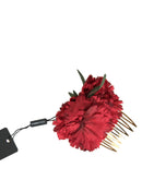 Dolce & Gabbana Red Silk Floral Gold Brass Women Hair Comb