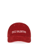 The Chez Valentino Baseball Hat by Valentino Garavani is an accessory with a sophisticated and contemporary style. Made of soft corduroy, it combines elegance and refined texture with a sporty silhouette. Chez Valentino embroidery on the front adds a distinctive touch, while the adjustable strap at the back ensures a comfortable and customizable fit. Perfect for completing both casual and more polished looks with personality.