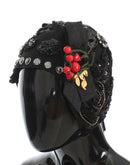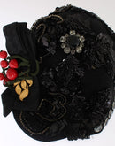 Dolce & Gabbana Black Crystal Gold Cherries Brooch Hat