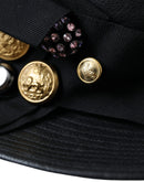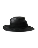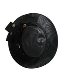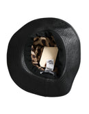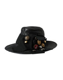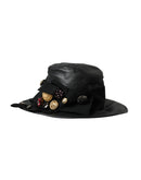 Dolce & Gabbana Black Leather DG Coin Crystal Wide Brim Hat