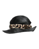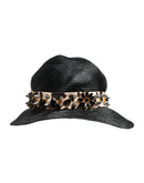 Dolce & Gabbana Black Straw Crystal Embellished Wide Brim Hat
