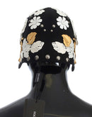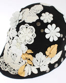 Dolce & Gabbana Black Wool White Floral Gold Leaf Hat