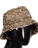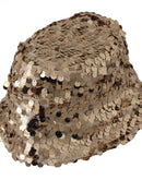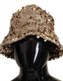 Dolce & Gabbana Gold Silk Sequin Embellished Designer Brim Bucket Hat