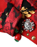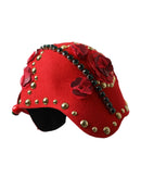 Dolce & Gabbana Red Crystal Gold Roses Brooch Embellished Hat