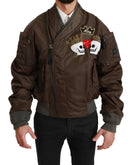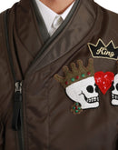 Dolce & Gabbana Brown Beaded Crown Skull Logo Jacket