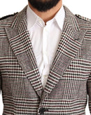 Dolce & Gabbana Gray Check Plaid Long Trench Coat Jacket