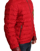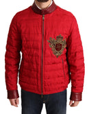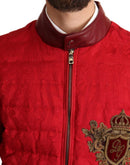 Dolce & Gabbana Red Brocade Bomber Gold Crown Logo Coat Jacket