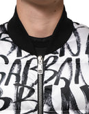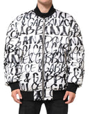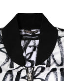 Dolce & Gabbana White Black Graffiti Logo Puffer Bomber Jacket