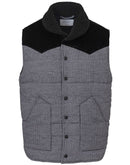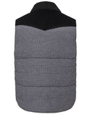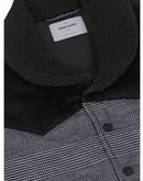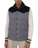 Gran Sasso Prince of Wales Padded Sleeveless Jacket. Front fastening with exposed snap buttons, two pockets on the side, black wool collar with bouclé effect. Black corduroy panel on contrasting chest and front. Rounded pattern at bottom. Composition: 100% Cotton, 100% Polyester. Inner Sku: 24SET32