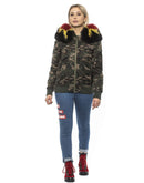 Discover the epitome of urban chic with the Mr&Mrs Italy Women’s Bomber Jacket. Flaunt your fearless fashion sense with this bold camouflage print piece that effortlessly blends luxury with street style. Perfect for the trendsetter who isn’t afraid to stand out, this jacket features a sleek zip closure and two functional front pockets, all while keeping you cozy with its sumptuous hood equipped with removable fur. Crafted in Italy, it’s a blend of sophistication and edge.