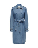 The Only Onljuliette Ls Dnm Qyt 15325602 women’s trench coat combines the timeless elegance of a classic trench with the contemporary appeal of denim. Crafted from 100% cotton, it ensures breathable comfort and a relaxed fit, making it ideal for transitional weather. Featuring a double-breasted front, adjustable waist belt to accentuate the figure, and stylish details like shoulder epaulettes and cuff buckles, this trench is perfect for elevating casual chic outfits or adding a modern twist to everyday looks.