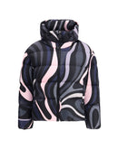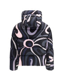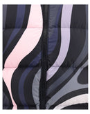 The Iride Down Jacket by Pucci is crafted from quilted fabric with duck down padding and an all-over print that makes each piece unique. The design features an adjustable hood, high collar, and front zip closure, completed by side pockets, long sleeves with elastic cuffs, and dropped shoulders. A drawstring at the hem allows for a customizable fit, while the slightly cropped cut brings a contemporary balance of comfort and style. Reflecting the Maison’s vibrant aesthetic, this jacket combines practicality and graphic creativity in an urban yet refined silhouette.