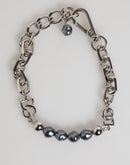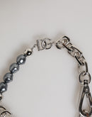 Dolce & Gabbana Silver Tone Chain Lobster Clasp Logo Gray Pearls Bracelet