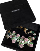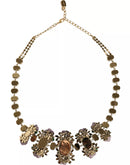 Dolce & Gabbana Gold Brass Link Chain Rose Petal Crystal Necklace