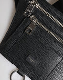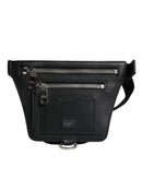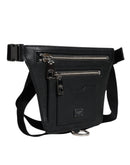 Dolce & Gabbana Black Calfskin Logo Plaque Belt Waist Men Fanny Pack Bag