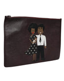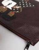 Dolce & Gabbana Brown Leather #DGFAMILY Embellished Men Clutch Pouch Bag